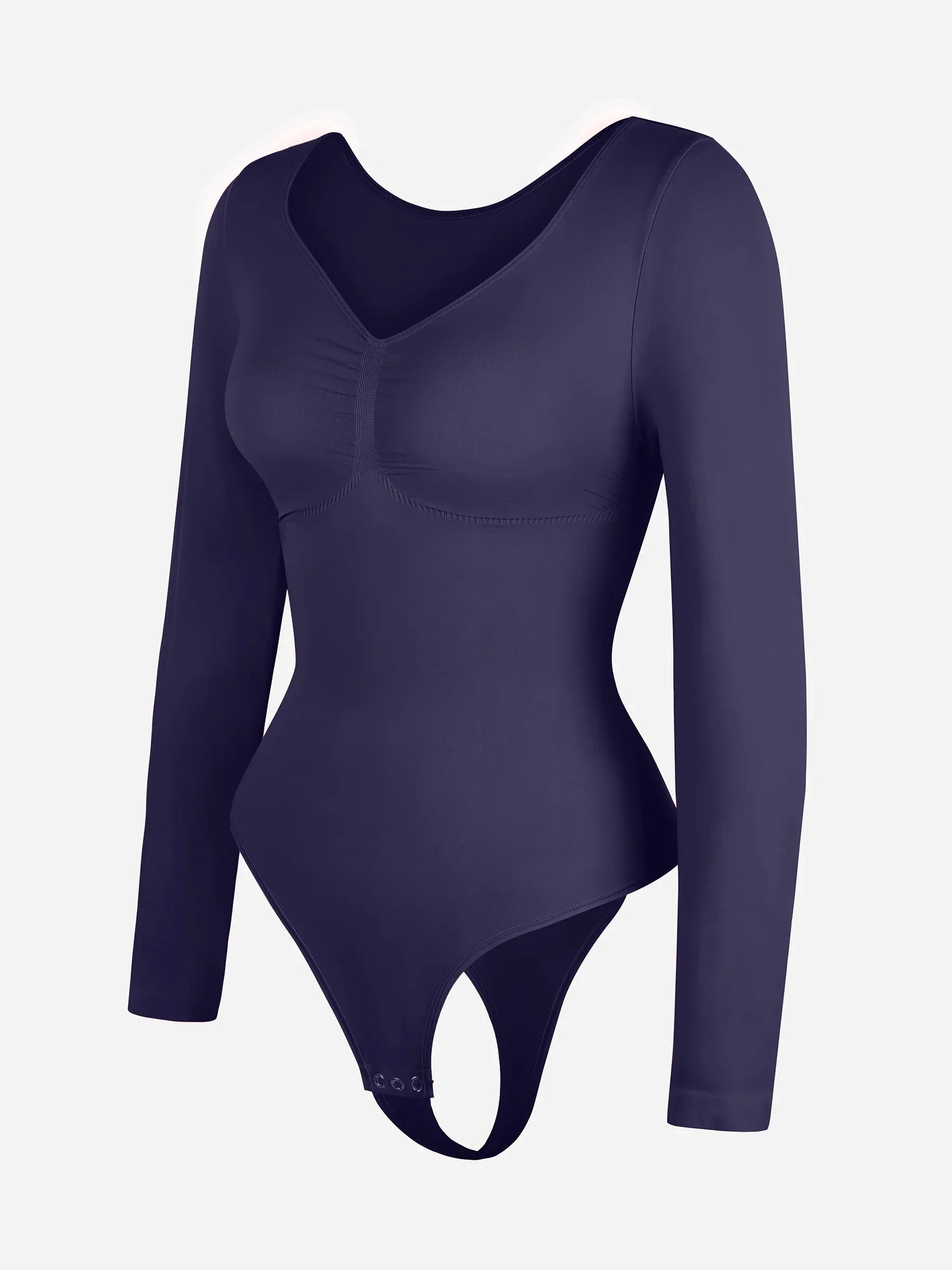 Feelingirl Seamless Long Sleeve Tummy Control Thong Bodysuit